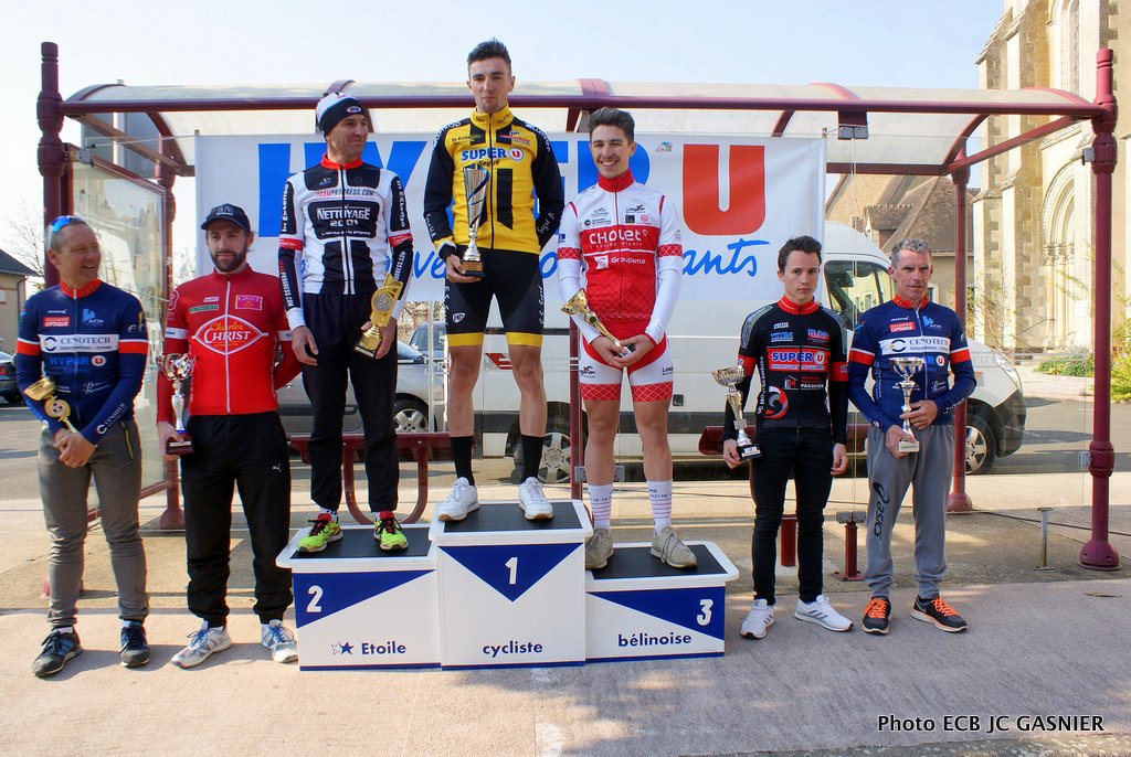 Louis Barbin (ES Segré Haut-Anjou) 1er - Noël Richet (Team Progress) 2ème Edouard Pavy (UC Cholet 49) 3ème . Cyrille Masson (UC Montgesnoise) est 9ème et 1er 3ème catégorie et son co-équipier Théo Leroux est 20ème et 1er junior. Classement complet ici