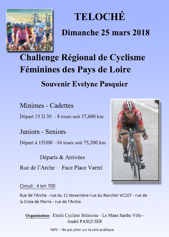 Challenge Régional de Cycliste Féminin le 25 mars à Téloché