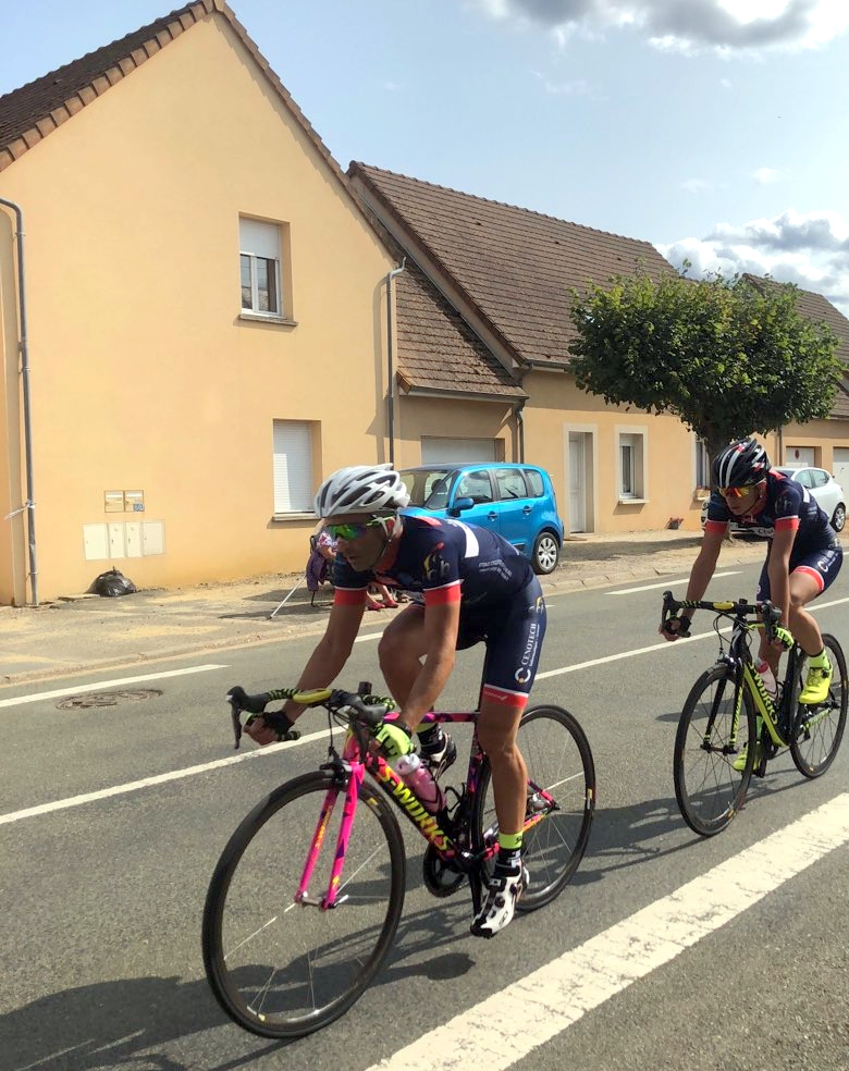 Aujourd'hui course de Bonnetable, sur un circuit exigent, je me retrouve seul devant, puis un contre rentre, sans Tom.....Du coup, un peu déçu, et bien je lâche les freins et gagne. Je monte donc directement en 3ème catégorie. Tom termine 16ème dans le peloton.